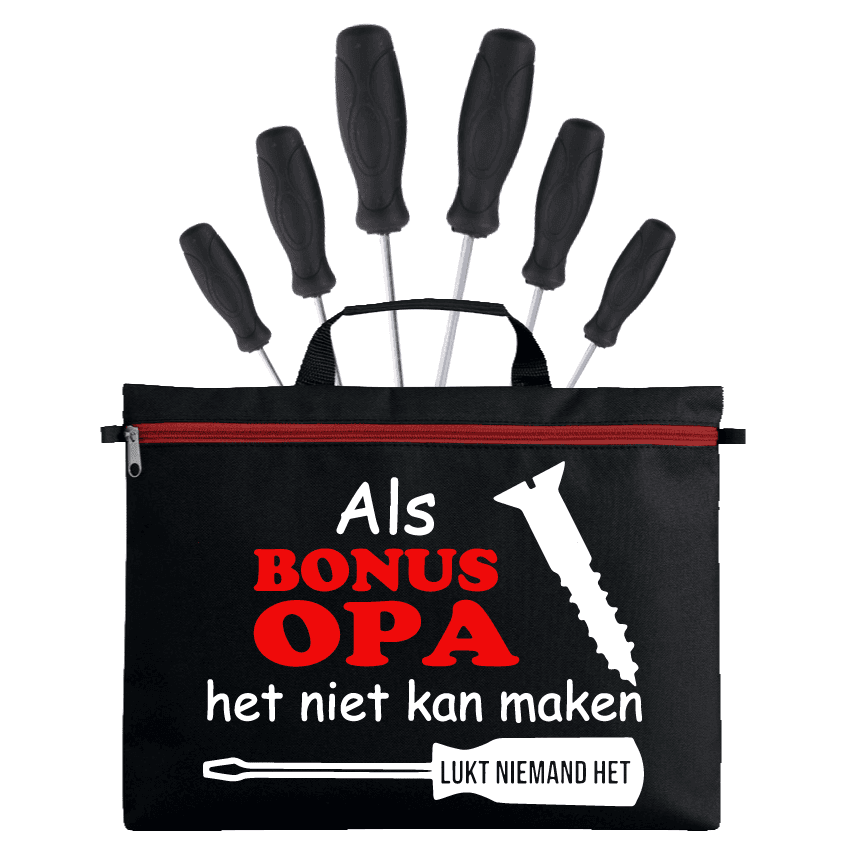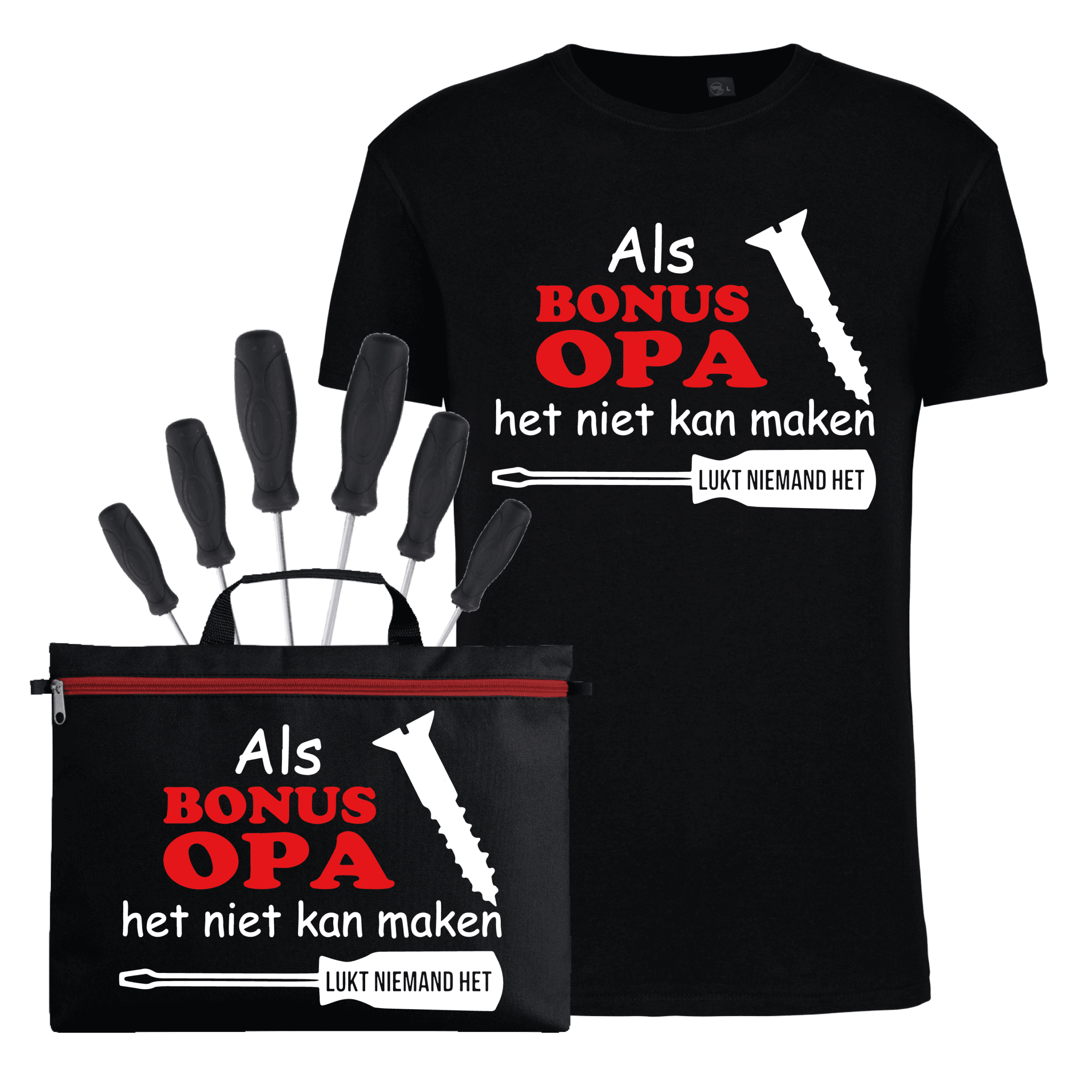 Bonus OPA Schroevendraaierset met T-shirt – Stoer, praktisch en persoonlijk. Het perfecte cadeau voor de handige en trotse bonusopa!